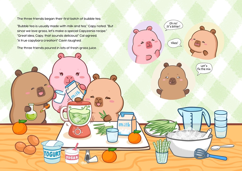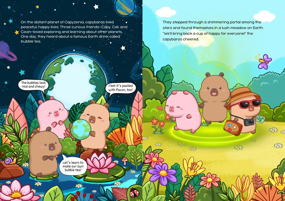 Meet Capy, Cali, and Cavin, three curious capybara friends from the peaceful planet Capyzenia. When they land on Earth and discover bubble tea, they decide to make their own “cup of happy.” Through playful experiments and teamwork, they learn that happiness isn’t about perfection—it’s about creativity, friendship, and sharing life’s simple joys.
