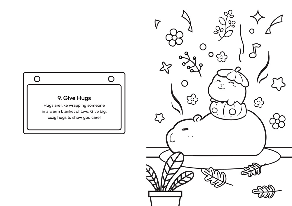 More than just a capybara coloring book, Capybara Zen is a celebration of mindfulness for kids. It encourages emotional awareness, creative expression, and calm. Children are free to color, explore their feelings, and enjoy a moment of peace—guided by one very chill capybara.